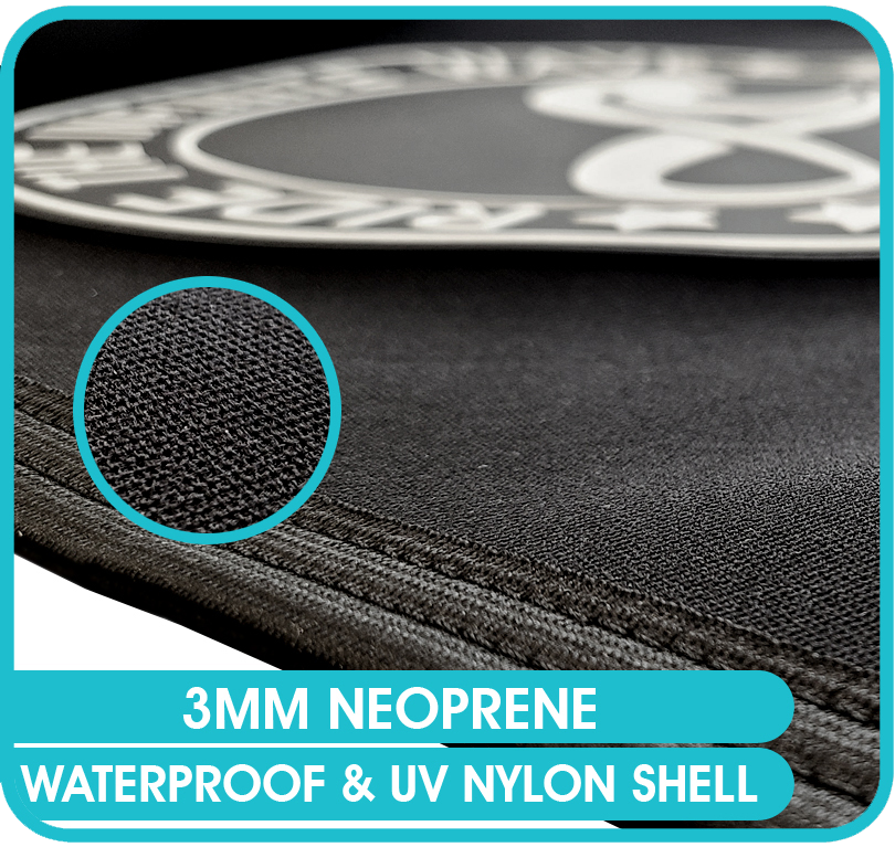 Shock absorbent neoprene with a Waterproof & UV Nylon shell that will keep your hull protected.